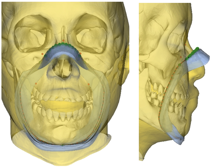 We're proud of the work we're doing with Gentex and the U.S. Navy supporting the development of new oxygen masks for U.S. and NATO fighter pilots. Oxygen masks are critical equipment to ensure pilots can function at high Gs, but the current designs do not provide good fit for many pilots. We are working closely with the Navy on this. The NAWCAD DREAMS lab recently completed the first detailed anthropometric survey of Navy aircrew in decades. Through a Cooperative Research and Development Agreement(CRADA) between U-M and NAWCAD, we were able to fit their high-resolution head scan data using our detailed head template and build a Navy-specific head shape model based on over 900 aircrew. We've then developed novel methods to use population 3D data, not just linear dimensions, to design new mask contours. This work is ongoing, but preliminary results are very encouraging. The research draws heavily on our recent world-leading head modeling based on medical imaging data. Our current baseline model uses data from over 600 diverse subjects, enabling us to not only fit the Navy head surface data but also impute accurate skulls. This capability is a critical enabler for the oxygen mask research, because the mask seal is determined by a complex interaction between mask and tissue deformation.